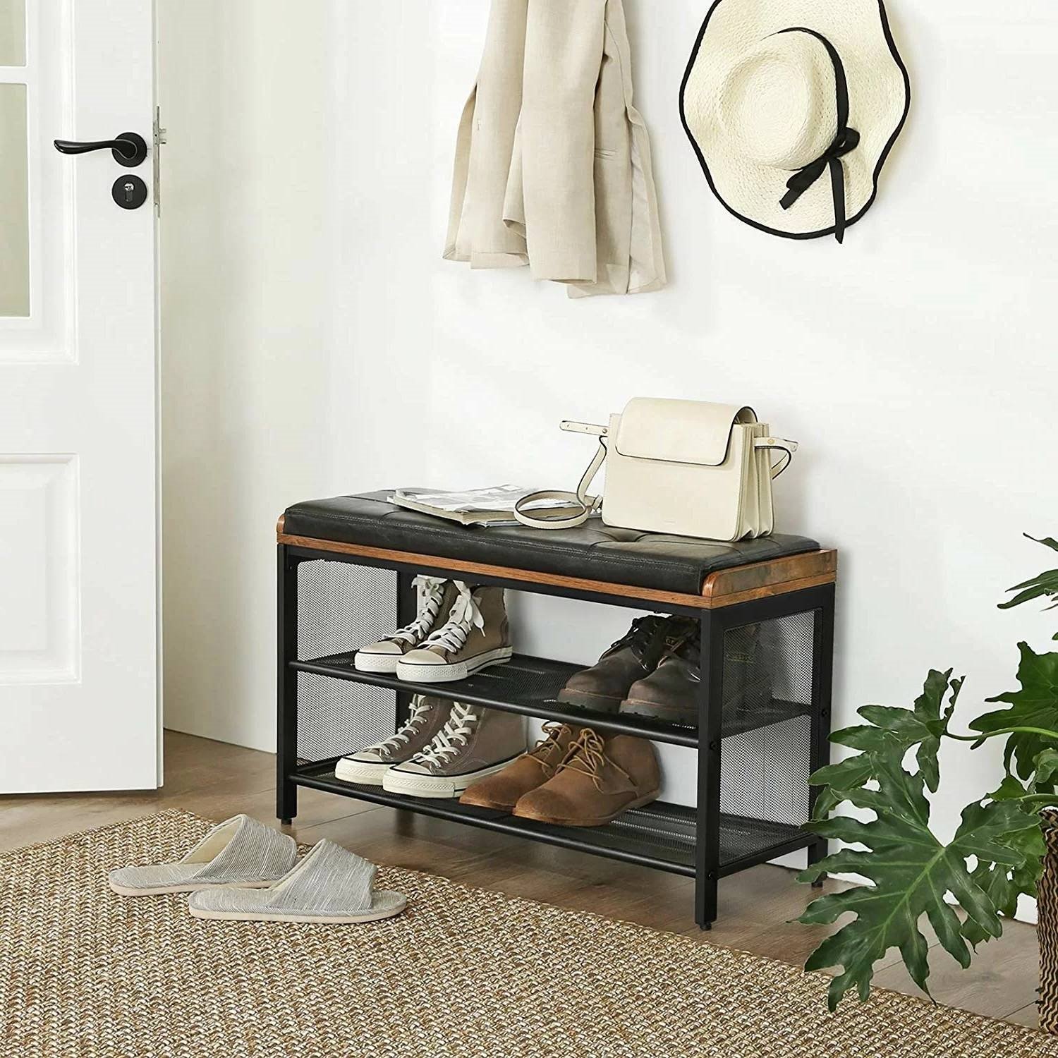 Black Metal Entryway Shoe Rack Storage Bench with Padded Seat Cushion Black Metal Entryway Shoe Rack Storage Bench with Padded Seat Cushion Black Metal Entryway Shoe Rack Storage Bench with Padded Seat Cushion Black Metal Entryway Shoe Rack Storage Bench with Padded Seat Cushion Black Metal Entryway Shoe Rack Storage Bench with Padded Seat Cushion