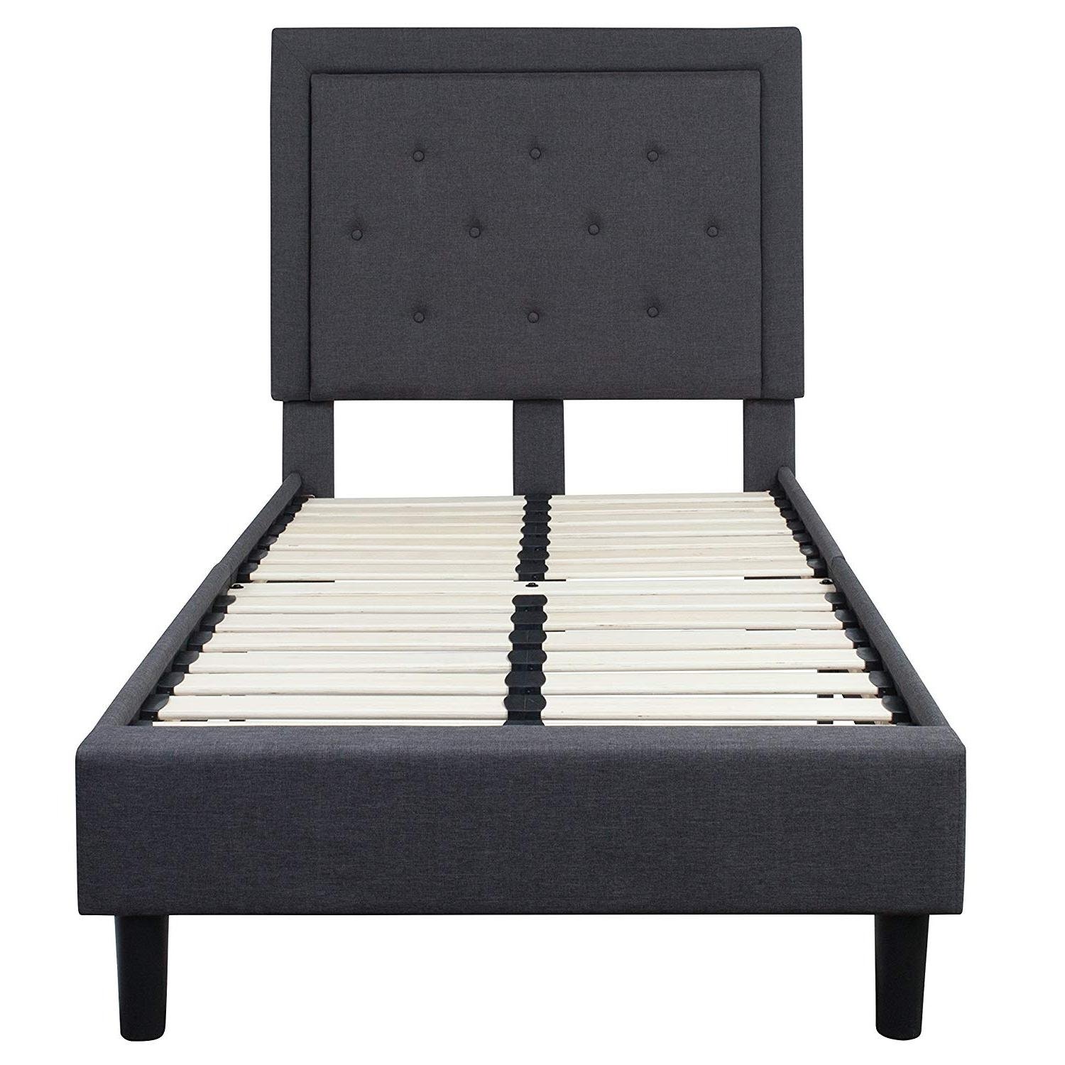 Twin Dark Gray Fabric Upholstered Platform Bed with Button Tufted Headboard Twin Dark Gray Fabric Upholstered Platform Bed with Button Tufted Headboard