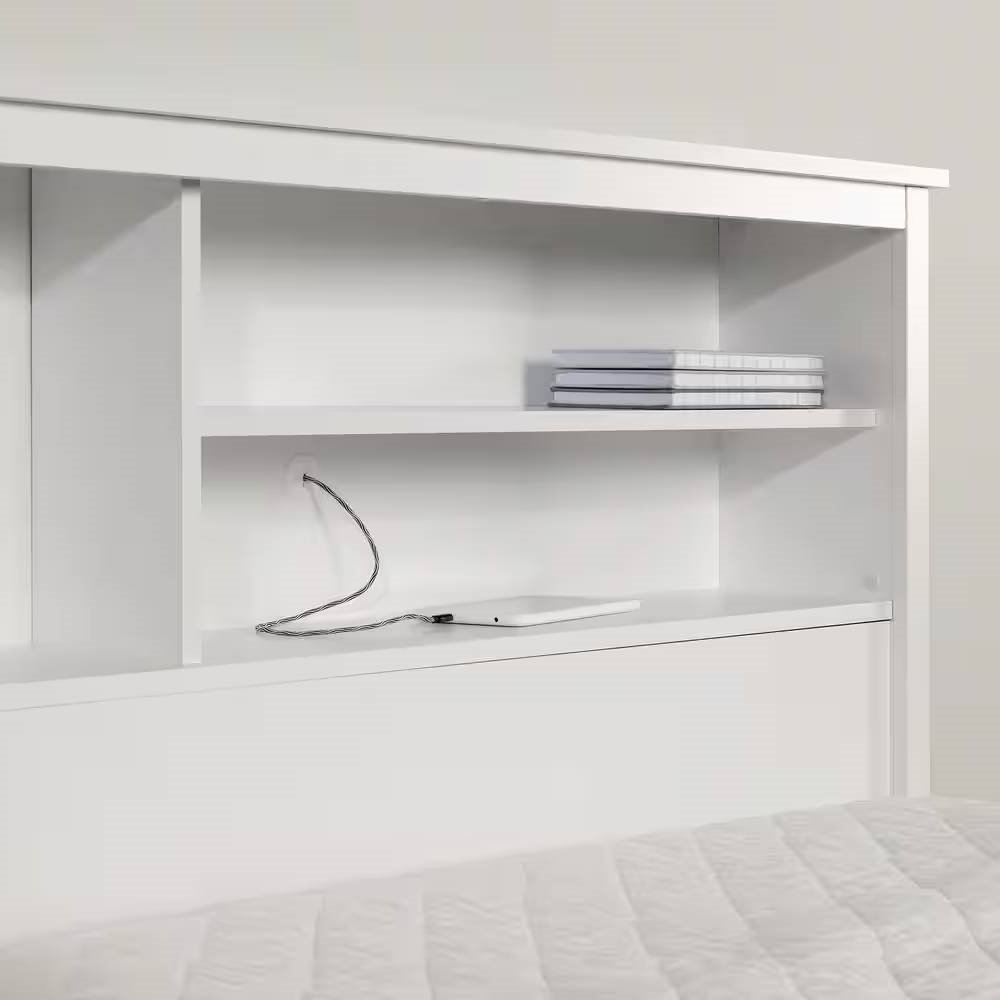 Twin size Modern Scandinavian Style Bookcase Headboard in White Wood Finish