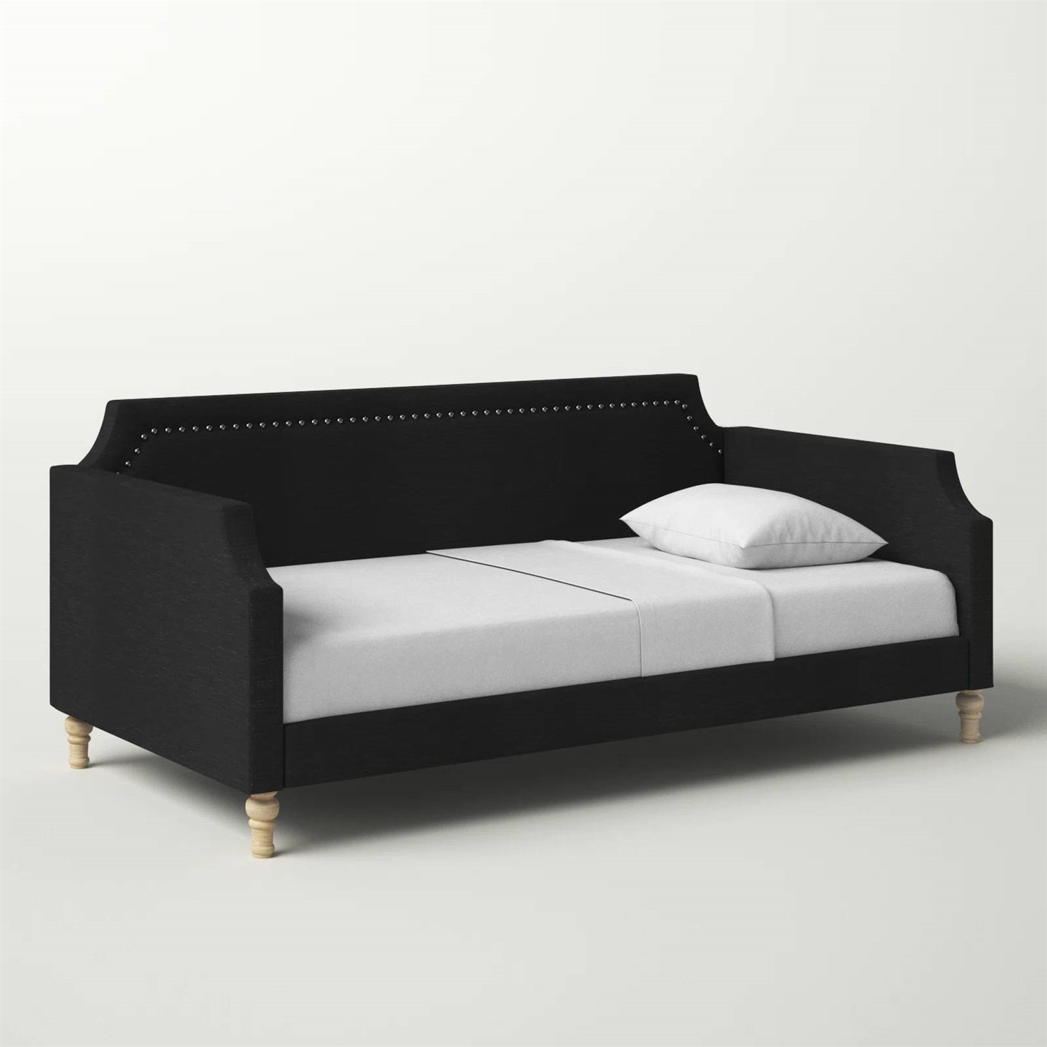 Twin size Black Polyester Fabric Upholstered Daybed with Nailhead Trim Twin size Black Polyester Fabric Upholstered Daybed with Nailhead Trim Twin size Black Polyester Fabric Upholstered Daybed with Nailhead Trim Twin size Black Polyester Fabric Upholstered Daybed with Nailhead Trim Twin size Black Polyester Fabric Upholstered Daybed with Nailhead Trim