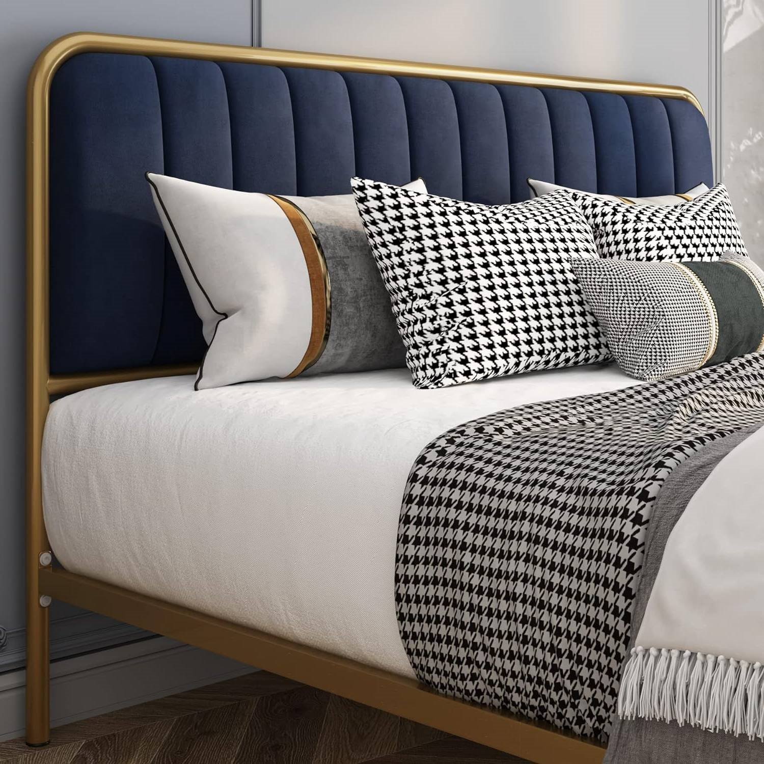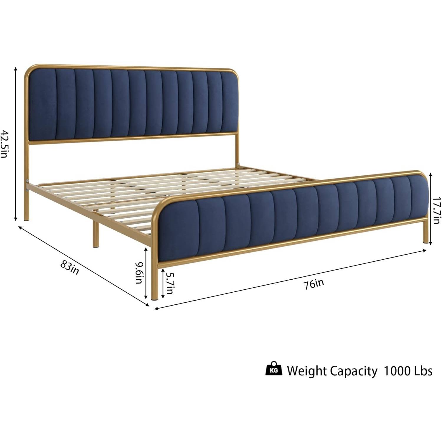 King Gold Metal Platform Bed Frame with Navy Blue Velvet Upholstered Headboard King Gold Metal Platform Bed Frame with Navy Blue Velvet Upholstered Headboard King Gold Metal Platform Bed Frame with Navy Blue Velvet Upholstered Headboard King Gold Metal Platform Bed Frame with Navy Blue Velvet Upholstered Headboard King Gold Metal Platform Bed Frame with Navy Blue Velvet Upholstered Headboard