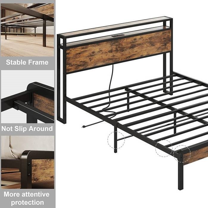 Full Size Industrial Platform Bed Frame with Storage Headboard and Power Outlets Full Size Industrial Platform Bed Frame with Storage Headboard and Power Outlets Full Size Industrial Platform Bed Frame with Storage Headboard and Power Outlets Full Size Industrial Platform Bed Frame with Storage Headboard and Power Outlets