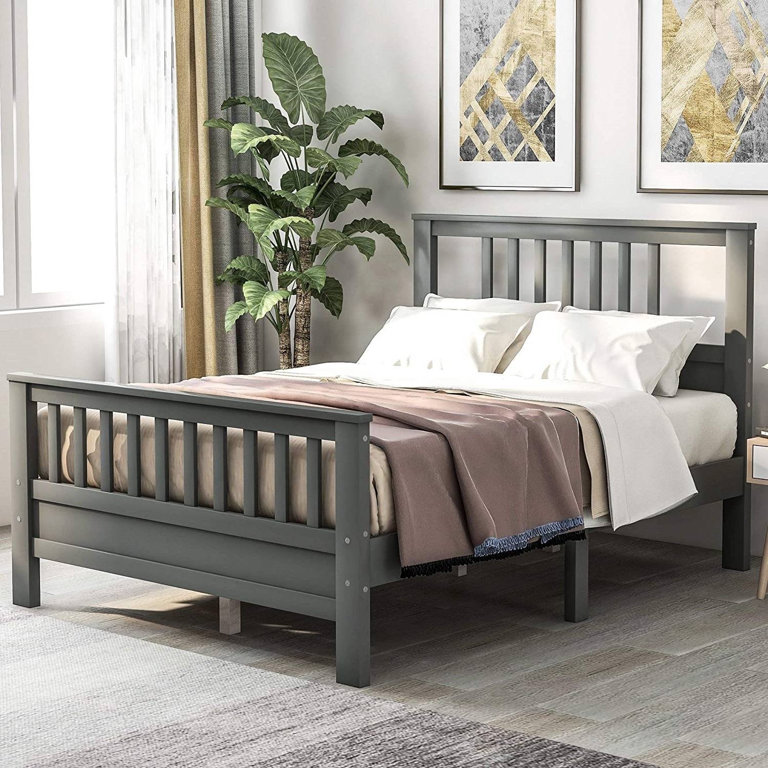 Home > Grey Pine Wood Slatted Platform Headboard Footboard Full Size Bed