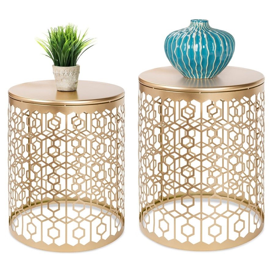 Set Of 2 Circle Charm Round Accent Table Nightstand Gold