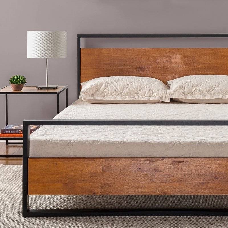 Queen size Modern Metal Wood Platform Bed Frame with Headboard and Footboard